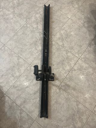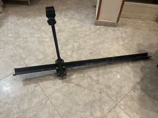 Portabicicletas de techo para transportar bicicletas de forma segura. - Fabricado en metal negro. - Soporte ajustable para la rueda delantera. - Base larga y robusta.