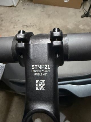 Manillar de carbono y Potencia de aluminio STMP21. Marca OC de Orbea. Quitado sin estrenar en una Orbea Oiz M10. No se vende por separado. - Longitud: 75 mm. - Ángulo: -6 grados. - Incluye tornillería.