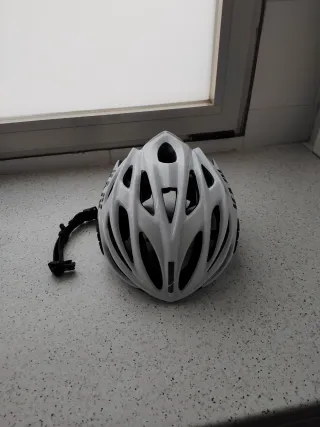 Casco de ciclismo blanco con detalles reflectantes y luz trasera integrada. - Talla L/XL. - Certificado TUV. - Incluye detalles reflectantes para mayor visibilidad. - Diseño con ventilación.