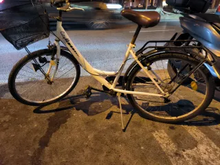 Bicicleta de estilo clásico, ideal para paseos o como pieza decorativa. Bicicleta antigua, hay que hacerle retoques y arreglar un par d cosas, pero en bastante buen estado, funciona bien, le falta aire y retoques - Guardabarros plateado. - Portabultos trasero. - Luz trasera con soporte.