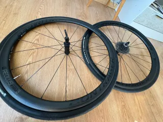 Juego de ruedas Mavic SLR Disc para bicicleta de carretera. - Ruedas de alto rendimiento. - Diseño aerodinámico. - Compatibles con frenos de disco. - PVP: 1.800€ NO INCLUYE el cassette ni los discos. Con cassette Shimano Ultegra 11v y Discos Dura-Ace serían 895€