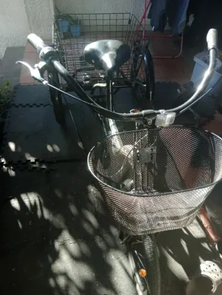 Triciclo diseñado para adultos, con una cesta frontal y trasera para llevar objetos. - Estructura robusta. - Asiento cómodo. - Ruedas de buen tamaño. - 6 marchas/velocidades - buena estabilidad Precio negociable Ubicación: empuriabrava