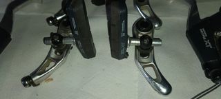 Manetas de freno y cambio Campagnolo Récord 10v Carbono. - Diseño ergonómico para un agarre cómodo. - Acabado en negro. - Con signos de uso pero funcionan perfectamente.