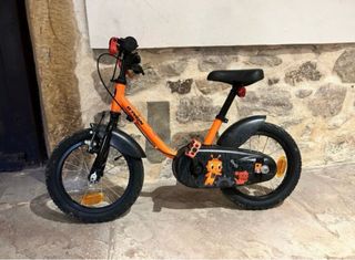 Bicicleta infantil de 14 pulgadas, ideal para los más pequeños. Su llamativo color naranja la hace muy visible. - Ruedas de 14 pulgadas. - Diseño infantil con dibujos de robots. - Frenos de mano. - Guardabarros delantero y trasero.