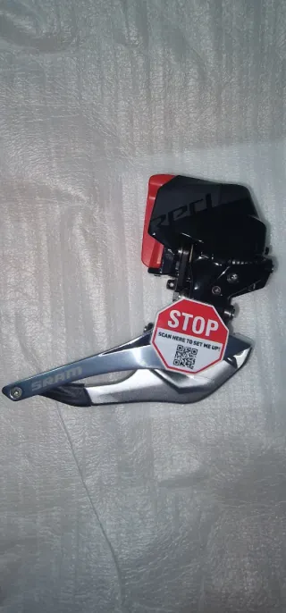 Desviador delantero SRAM RED ASX. - Diseño en color plata y negro. - Incluye etiqueta de configuración con código QR. Trek,pinarello,bianchi,scott,orbea, bmc,giant,merida,lapierre,cube,megamo