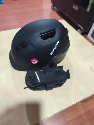 Casco de bicicleta Btwin en color negro. - Talla L (59-63 cm). - Incluye bolsa de transporte Btwin.