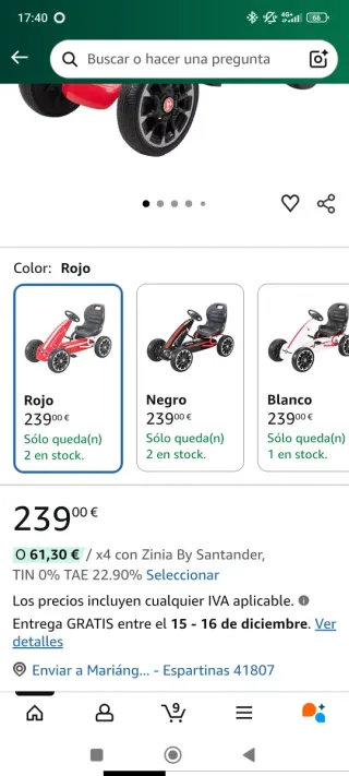 Carrito de pedales rojo