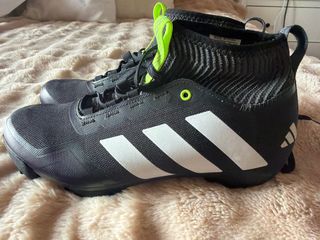 Zapatillas de ciclismo unisex THE GRAVEL 2. - Diseño de caña alta. - Cierre de cordones. - Detalle de tres franjas blancas en el lateral. - Logo de Adidas en el talón. - Color negro con detalles en verde lima. - Talla 38