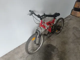 Bicicleta infantil de montaña en color rojo. - Suspensión delantera. - Ruedas de 20 pulgadas Goma rueda delantera para cambiar. Por lo demás todo bien.