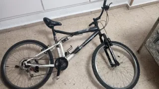 Bicicleta de montaña Rock Rider de Decathlon. Ideal para iniciarse en el ciclismo. - Sin cambio delantero - Suspensión delantera y trasera. - Cambio trasero Shimano. - Ruedas de 26 - Buen estado Pata de apoyo no incluida.