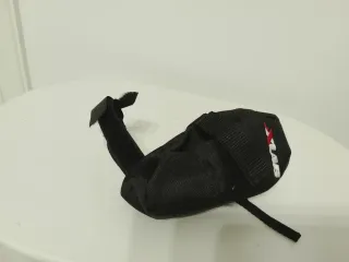 Pequeña bolsa negra para bicicleta, ideal para llevar herramientas o accesorios pequeños. Cierre con velcro. - Material textil resistente. - Logo de la marca visible.