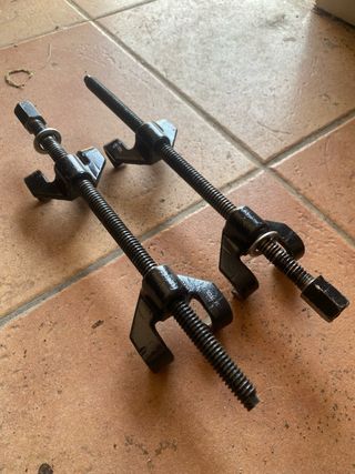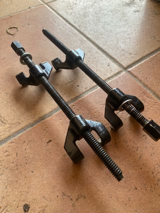 Vendo pareja de herramientas para comprimir muelles de suspensión, para su montaje y desmontaje. Fabricado en metal negro. Diseño robusto para mayor seguridad. Incluye dos unidades. En buen estado y listos para usar. Gancho: 316 318 320 325 328 330 e30 e36 e46 e39 e34 e21 e91 e90 compact angel eyes m3 motorsport llantas parrilla parachoques capo gato elevador taladro toma de aire admision motor aleta paragolpes spoiler aleron lip neon pilotos faros pistola de impacto dremel faro llantas harmann kardon bose bombo tweeter pantalla bluetooth android carplay iphone rally omp momo sparco recaro kart nardi drift tandas rally sport taller