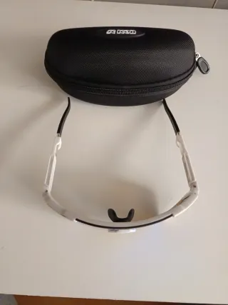Gafas de sol deportivas SC ICON, ideales para ciclismo. Vienen con su funda protectora. - Montura blanca. - Lentes espejadas azules. - Incluye funda rígida negra con logo SC ICON.