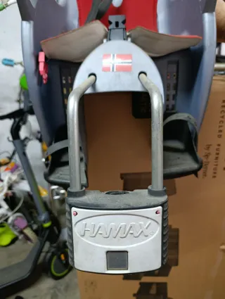 Sillita de seguridad para bicicleta de la marca Hamax. Diseñada para el transporte de niños. - Diseño ergonómico. - Hebillas de seguridad. - Soporte para pies ajustable. - Bandera de Noruega decorativa.