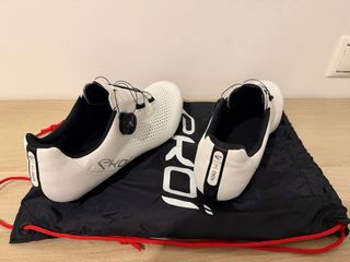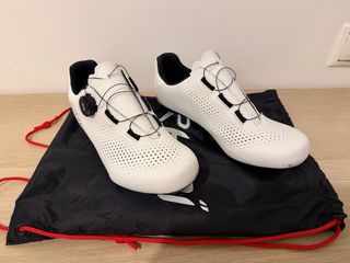 Zapatillas de ciclismo de la marca Ekoi en color blanco. Cierre BOA para un ajuste perfecto. Pequeñas marcas de uso que se aprecian en las fotos pero no tienen prácticamente uso. Calzo un 42 42,5 y me quedan perfectas. - Color blanco. - Cierre BOA. - Suela rígida.
