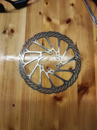 Disco de freno Avid de segunda mano. - Diseño con múltiples perforaciones para disipación de calor. - Construcción metálica robusta. - Con uso pero aún tiene vida. - 160mm