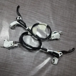Conjunto de frenos hidráulicos Shimano M395 blancos. Bastante usados pero funcionando perfectamente. Líquido nuevo y purgados. Pastillas en buen estado Latiguillos de 77 y 146cm Estéticamente mejorables, pero funcionalmente perfectos. Preguntadme cualquier duda, se hacen envíos económicos. Más cosas en mi perfil! shimano hope formula avid xt xtr slx saint zee sram fox rock shox dvo trp santacruz specialized magura mt guide code suntour v4 e4 x2 enduro descenso carbono horquilla