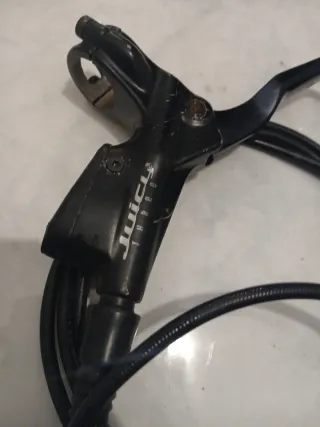 Vendo pareja de frenos hidráulicos Avid Juicy Three en muy buen estado. Es un sistema potente, ideal para XC, Trail o para mejorar tu bici actual con un frenado firme y modulable. Marca: Avid (SRAM). Modelo: Juicy Three. Incluye: Maneta, pinza, latiguillo y adaptador de pinza Estado: Funcionando correctamente. Pastillas con vida útil restante. Fluido: Utilizan líquido DOT 4 o 5.1.