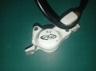 Pinza blanca de freno hidráulica AVID Con marcas de uso pero totalmente funcional Para bicicleta con discos de 160 mm, 180mm, 203mm y para patinete
