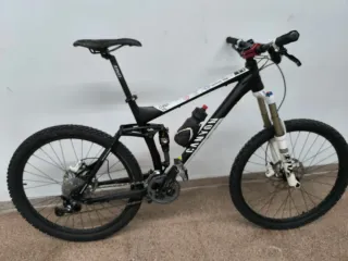 Bicicleta de montaña Canyon Nerve, con ruedas de 26 pulgadas. - Cuadro de aluminio. - Suspensión Fox delantera y trasera de 140mm de recorrido. - Frenos de disco Avid Elixir. - Cambio Shimano XT. - La bicicleta está lista para rodar.