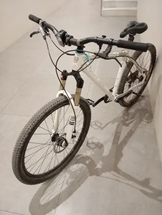 Bicicleta de montaña Rockrider 26" en talla "L". De las mejores de su época Grupo Sram, hecho monoplato como las bicicletas nuevas (solo cambios traseros) Frenos avid hidráulico atrás y disco mecánico delantero Horquilla Rock shox con bloqueo en el manillar Manillar ancho Neumáticos Maxxis, llantas doble pared, pedalier y pedales nuevos, cadena nueva Luces Funciona perfectamente