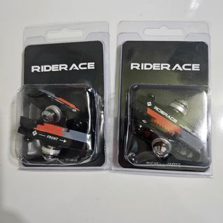 Vendo dos pares de zapatas de freno V. Riderace para bicicleta, nuevas a estrenar. Son para freno delantero y trasero.buena franada en mojado.existen recambio de gomas.yo tambien uso estas y van de cine.dura mucho.no compatible con campagnolo.SOLO ENVIOS por OFICINA CORREOS.sino es en persona.gracias - Incluye dos juegos completos. - Diseño en color negro y naranja. - Se aprecian en perfecto estado.