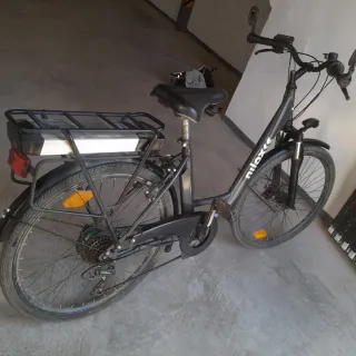 Bicicleta eléctrica Nilox en color negro. Ideal para desplazamientos urbanos. - Batería extraíble. - Portabultos trasero. - Ruedas de 28 pulgadas. - Frenos de disco.