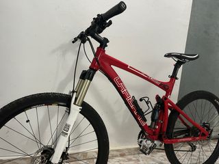 Bicicleta de montaña Rockrider con ruedas de 29 pulgadas. Rojo y negro. - Cuadro de aluminio. - Suspensión delantera y trasera de aire de 120 - Frenos de disco hidráulicostrasero 160 y delantero 180 (lo único la pastilla de freno trasero esta desgastado) - porta bicicletas de 3