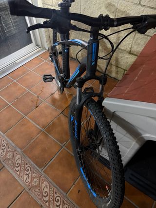 Bicicleta de montaña con cuadro de carbono y ruedas de 29 pulgadas. - Cuadro de carbono. - Talla M. Para alguien entre 1,65 - 1,79cm de altura. - Peso 11kg aprox. - Ruedas de 29 pulgadas. - Horquilla RockShox. - Frenos de disco.