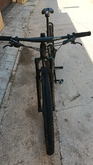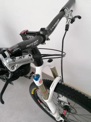 Bicicleta Massi de carbono - Cuadro de carbono. - Ruedas de 26" - Freno trasero mt-200 - Freno delantero mt-468 - Discos de 160 mm - Manillar 31.8 de 580 mm - Potencia larga - Suspensión rockshox Reba RL de aire 100 mm de recorrido - Sillín mafia bikes - Tija inclinable - Desviador SLX - Cambio trasero Deore XT - Vielas Shimano - Buje trasero ruidoso - Pedales tanke - Cubiertas Vittoria