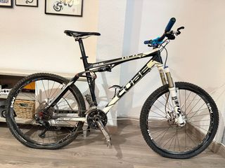 Bicicleta de montaña Cube. Lleva 3 años sin uso, hay que darle un repaso grande en general, especialmente a la suspensión y frenos. - Suspensión delantera y trasera FOX - Cuadro de aluminio CUBE - Frenos de disco FORMULA - Ruedas de 26 pulgadas SUN - Cambio SHIMANO DEORE XT - Biela SHIMANO SLX - Pedales híbridos SHIMANO Regalo casco Bell, potencia manillar, manguitos y varios accesorios. Por una lesión no la voy a utilizar.