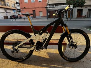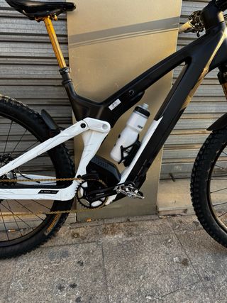 Bicicleta Scott Patrón tuned full carbono cuadro manillar etc.... Horquilla FOX 38 Factory 160 mm. FOX Nude T eRIDE EVOL, 160 mm, TwinLoc. cambio SRAM X01-GX Eagle, 12 velocidades. Bosch CX, PowerTube 750 Wh. Frenos de disco con 4 pistones Shimano XT. . Tija ajustable FOX kashima Componentes Syncros. talla L está vinilada con troquel para patron 3500 kilómetros
