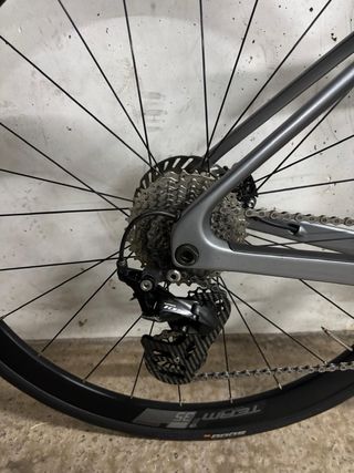 Bicicleta de carretera Ridley en perfecto estado. Talla M. Revisada en mayo de 2025, cambio de rodamientos y cableado, fundas, manillar plano, cinta de manillar, pastillas de freno, casete 10-32 nuevo, cadena y pedales, todo cambiado junto a la revisión. - Cuadro de carbono. - Frenos de disco Shimano Ultegra - Cubiertas Pirelli P Zero. (Tubeless) -Ruedas de aluminio Mavic ( delantera a estrenar) - Transmisión Shimano Ultegra -Bielas FSA con platos compac 50-34