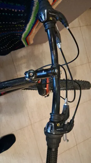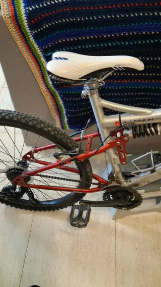 Bicicleta de montaña de la marca Racer en color rojo. La usaba mucho antes y iba genial, pero ahora no tengo tiempo y ajustar bien los pedales porque lleva tiempo sin usarse. Las marchas y todo eso bien lo único tiene como un traqueteo al darle a los padeles pero eso sería ajustarlos porque la tengo mucho tiempo parada -Acepto cambios - Cuadro de aluminio. - Ruedas de 29 pulgadas. - Frenos de disco. - Suspensión delantera. - Portabidón incluido.