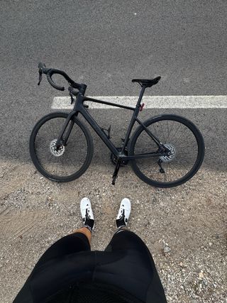 Bicicleta de carretera Cube en color negro. Diseño moderno y elegante. No hago cambios. Comprada a finales de abril de 2025. Se ha usado literal para 4 salidas. - Cuadro de carbono. - Frenos de disco. - Ruedas de perfil