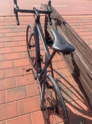 Bicicleta de carretera de color gris oscuro. talla M - Cuadro de carbono. - Frenos de disco. - Manillar curvo.