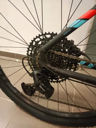 Bicicleta de montaña WRC PRO con ruedas de 29 pulgadas. Se encuentra en buen estado. - Cuadro de aluminio. - Frenos de disco. - Suspensión delantera. - Cambio Shimano. - Horquilla RockShox. - Cubiertas Maxxis. - Transmisión 1X10 10/50 Monoplato ovalado 34 dientes. Llantas tubeless ready. Ruedas tubelizadas.Cierres ruedas mavic. Frenos shimano hidraulicos. Disco delantero 180 mm y trasero 160mm. Regalo grupo original de dos platos, plato ovalado 36 dientes y plato normal 34 dientes.