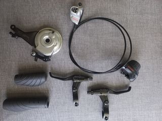 Kit de componentes Shimano Nexus para bicicleta. - Incluye maneta de cambio. - Incluye manetas de freno. - Incluye puños. - Incluye freno de tambor.