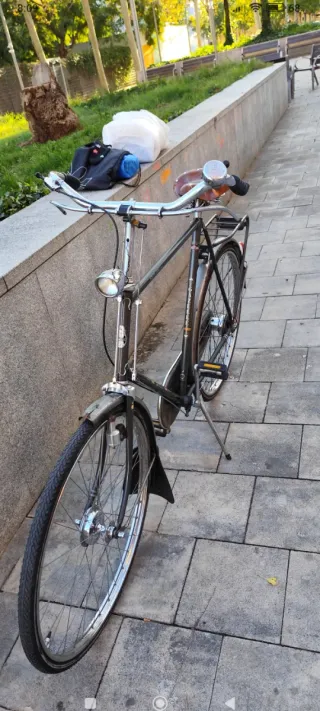 Bicicleta antigua de freno de Varillas, está completa a falta del cubrecadenas. Sillín de cuero original, necesita un arreglo. Portaequipajes original, la bicicleta está totalmente original menos un pedal que se cambió por otro un poco más moderno. Funciona perfectamente. Solamente necesita pintura y las ruedas. Sólo venta en Ciudad Real y provincia.