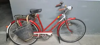 Bicicleta antigua de paseo, Color rojo/granate frenos de varilla (falta freno delantero) Guardabarros, cubrecadena y transportín .