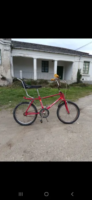 Bicicleta clásica BH Bicicross de los años 80. Un modelo icónico para coleccionistas y amantes del BMX. - Cuadro de acero. - Ruedas de 20 pulgadas. - Sillín tipo banana. - Puños naranjas. - Frenos de varilla.