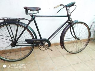 Bicicleta antigua con un diseño clásico y detalles de época. - Frenos de varilla. - Cuadro de metal. - Sillín de cuero con resortes. - Portabultos trasero.