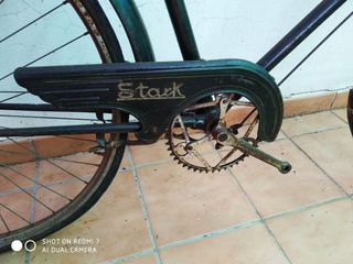 Bicicleta clásica con sillín de auténtico cuero. Tiene cambio de 3 velocidades en el eje trasero. Freno trasero contrapedal y delantero de cuchara (frena con varilla sobre la rueda). Cromados, pintura y neumáticos bien ,funciona perfectamente,no hay que reparar nada. - Faro delantero de carburo. Talla para 1,70 en adelante