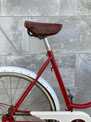 Bicicleta de paseo de los años 40 Todas las piezas originales Bicicleta única y exclusiva Toda la bicicleta esta revisada y puesta a punto Bujes y rodamientos engrasados Frenos de varillas ajustados Zapatas a estrenar Piñón libre Sillin tapizado a mano Cubiertas y camaras nuevas Michelín Talla S (152-165)