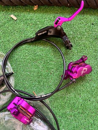 Freno de disco Hayes A4 en color morado. Nuevos a estrenar desmontado de bici nueva por cambio de sponsor - Diseño moderno y llamativo. - Construcción robusta. Bizum|paypal y en mano Envios 24h