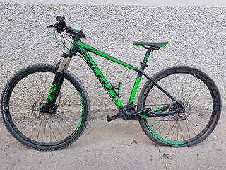 Bicicleta de montaña Scott Scale 960 en color negro y verde. - Talla M - Ruedas de 29 pulgadas tubeless - Suspensión delantera con bloqueador remoto en el manillar - Frenos de disco hidraúlicos - Calas incorporadas en los pedales incluidas La vendo por no usarla. Precio original 1400 euros. LLeva un año parada de ahí que se haya perdido el líquido tubeless de las ruedas y estén desinchadas. La reposición del líquido tubeless cuesta unos 10-15 euros en tienda.