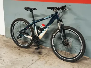 BICICLETA MONTAÑA 26 MARCA FOCUS. CAMBIO SHIMANO ALIVIÓ PULSACIÓN 24 VELOCIDADES 3 PLATOS Y 8 PIÑONES. SUSPENSION DELANTERA MARCA. SR SUNTOUR. FRENOS DE DISCOS DELANTERA Y TRASERA MARCA HAYES. RUEDAS DE DOBLE PARED ALUMINIO COLOR NEGRAS MARCA SAFETY LINE. CUBIERTAS NUEVAS MARCA MICHELÍN MEDIDAS 26X2.00. CON CIERRE RÁPIDO DE RUEDAS Y SILLIN CUADRO LIJERO DE DOBLE PARED ALUMINIO 6061 MANILLAR TIJA Y PEDALES DE ALUMINIO PESA MUY POCO 14 KILOS TALLA (S) COLOR DE BICICLETA AZUL OSCURO Y NEGRO. SOPORTE PARA BOTELLA. ESTÁ FUNCIONANDO PERFECTAMENTE CON MUY POCO USO NO HAY QUE HACER NADA ESTÁ REVISADA PARA HACERLE KILÓMETROS
