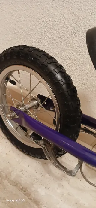 Bicicleta de aprendizaje B-PRO en color morado y detalles en rosa. Perfecta casi sin usar.. Va perfecta. - Ruedas hinchables. - Freno. Perfecta para primavera si no quieres gastar mucho, después siempre puedes venderla, cuando haya dado el servicio.