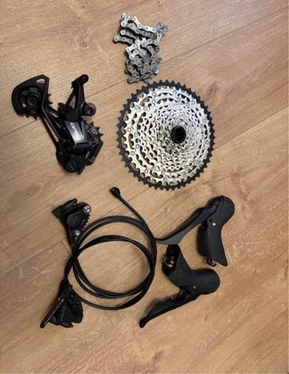 Juego de frenos shimano XTR M9100. Pastillas nuevas en ambos frenos. Se añade latiguillo nuevo a parte para freno trasero y las olivas para su montaje. En perfecto estado ya se puede ver