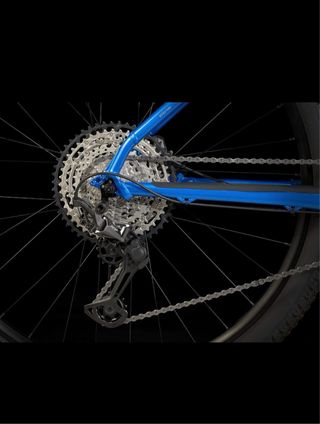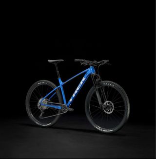 Bicicleta de montaña Trek X-Caliber 9 del año 2022. Color azul vibrante. - Cuadro de aluminio ligero. - Ruedas de 29 pulgadas. - Frenos de disco hidráulicos. - Transmisión de alta gama. Componentes principales * Transmisión: Shimano XT/SLX de 1x12 velocidades con cassette 10-51T y plato de 30T. * Suspensión: Horquilla RockShox Recon Gold RL con 100 mm de recorrido, bloqueo manual y barras de aluminio de 32 mm. * Frenos: Frenos de disco hidráulicos Shimano. * Ruedas: Llantas Bontrager Kovee 29" de doble pared y preparadas para tubeless (Tubeless Ready), con líquido para tubeless incluido. * Tija: Tija telescópica TranzX JD-YSP18.